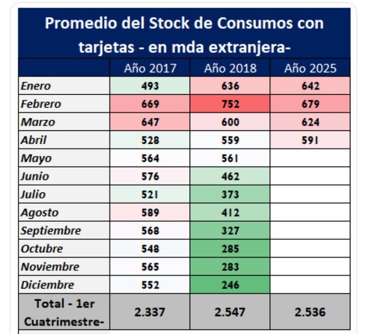 El fenómeno se viene consolidando desde mitad del año pasado con el proceso de apreciación cambiaria. En los primeros cuatro meses del 2025 los gastos en el exterior acumularon u$s2.536 millones y alcanzaron niveles similares a los del 2018, pese a la brecha que rigió durante este año entre la cotización del dólar para atesorar (primero el MEP y ahora el oficial), con el dólar tarjeta.