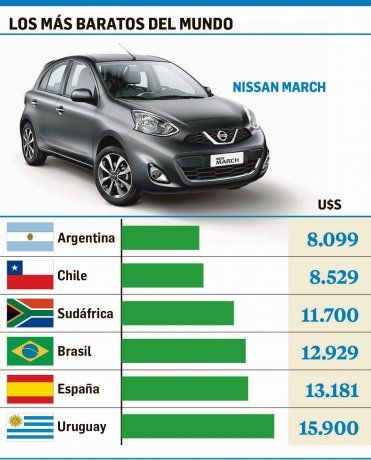 Por el salto del dólar de ayer, como consecuencia del sorpresivo resultado de las PASO, otra vez hay en el mercado autos por debajo de ese precio. Por ejemplo, el Nissan March –uno de los modelos más accesibles- cuesta ahora u$s8.099, en base al cierre de la cotización de ayer. El viernes pasado, el mismo modelo valía u$s10.030. No sólo eso. Con el valor actual, la Argentina es el país que más barato se puede conseguir este modelo o su equivalente en otros mercados. En Chile, vale un poco más, pero se trata del mercado más abierto y competitivo de la región. Después, la comparación con otros mercados de Sudamérica, Europa o Sudáfrica, la diferencia es notable. Claro está que, esta particularidad puede modificarse en pocos días, cuando las empresas ajusten sus listas de precios, o si se sigue devaluando la moneda local.