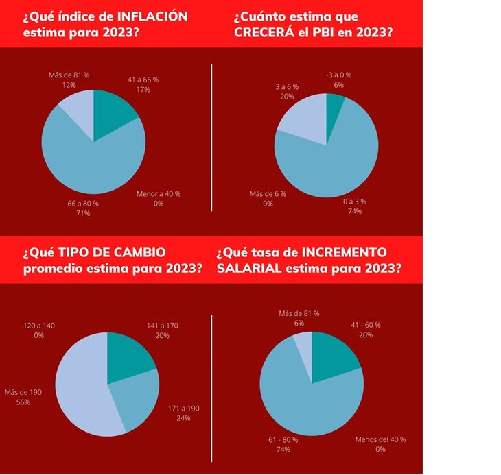 Los empresarios argentinos aseguraron que la falta de confianza y la incertidumbre respecto al rumbo económico del país son dos de los principales factores que condicionan las proyecciones para el año próximo, sumado a una inflación que, estiman, llegará al 70 por ciento. En sintonía con este dato, esperan que el crecimiento salarial promedie el 67 por ciento.