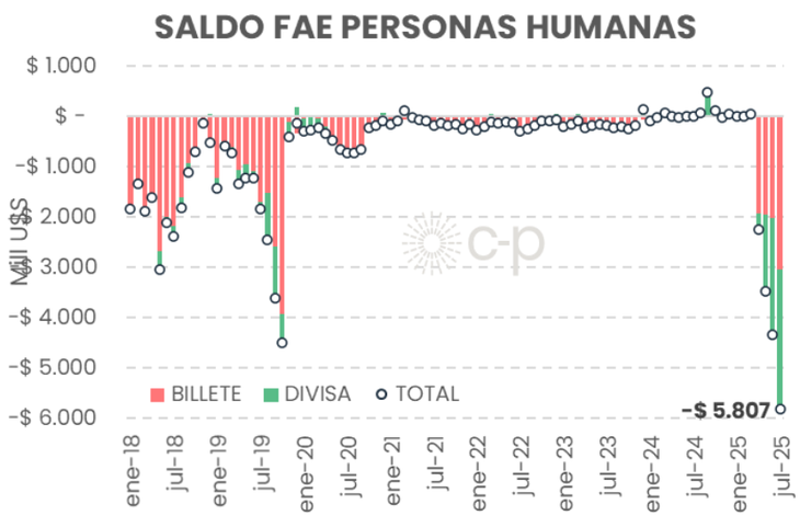 Asimismo, si se tienen en cuenta todos los conceptos que hacen a la Formación de Activos Externos (FAE) de personas, el número asciende a u$s5.807 millones. En este caso sí se trató de un récord absoluto.