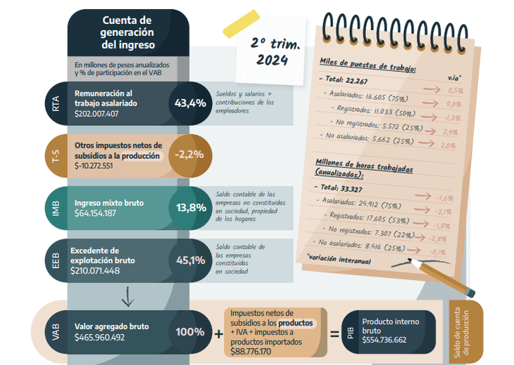 Los datos corresponden a la Cuenta de Generación de Ingreso e Insumo de la Mano de Obras que elabora el organismo estadístico.