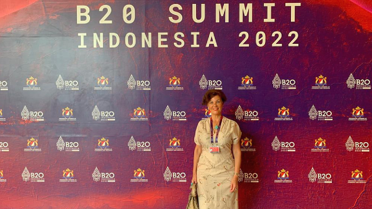 La empresaria argentina Delia Flores participa del G20 en Indonesia.