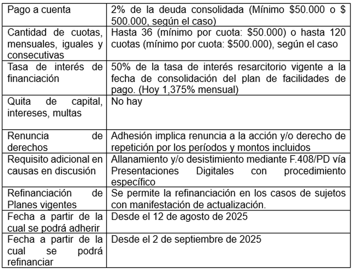 Las adecuaciones se encontrarán disponibles para la adhesión en el sistema informático “Mis Facilidades” a partir del 12 de agosto de 2025. La refinanciación de los planes vigentes estará disponible a partir del 2 de septiembre de 2025, inclusive.
