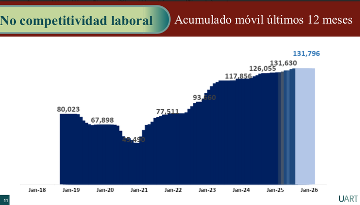 Para enero de 2026 se habrán acumulado 131.796 juicios por riesgos del trabajo, y el 90% de ellos corresponde a enfermedades que no dejan secuelas, según señalan desde la Unión de Aseguradoras de Riesgos del Trabajo (UART).