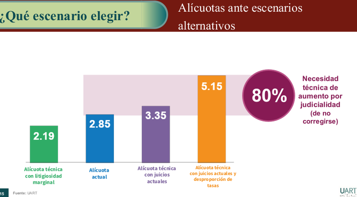 Y si ajustaran la alícuota en función de la eventual litigiosidad futura, deberían llevarla a 5,15%.
