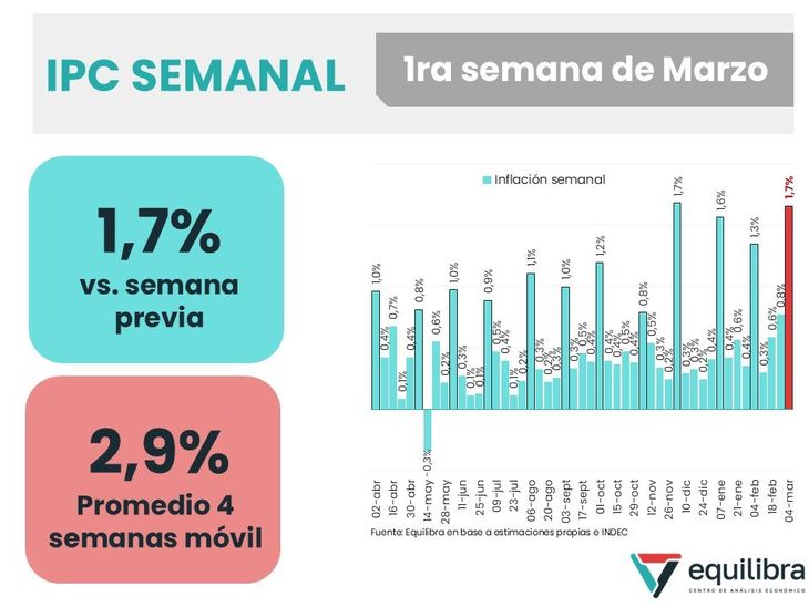 "Lo más probable es que la inflación de marzo arranque con 3%", aseguraron desde Equilibra.