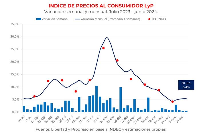 Además, respecto de la decisión del Gobierno de aplazar la suba de tarifas de luz y gas en julio, desde LyP señalaron que "ayudaría a que el índice de julio se acerque a la variación del componente núcleo del IPC (en 4%)".