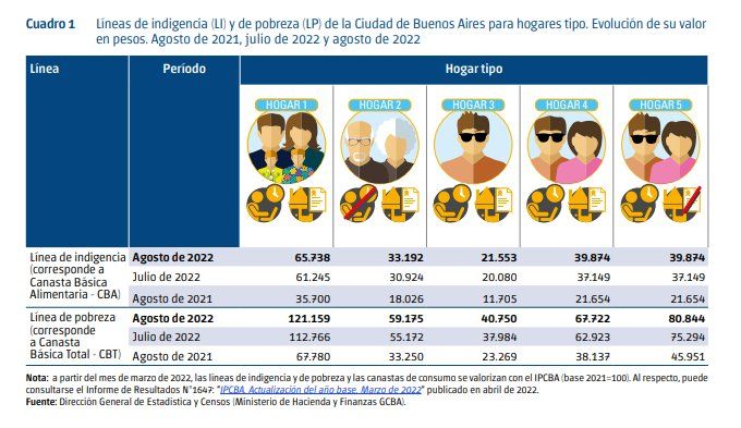 La Dirección General de Estadística y Censos la Ciudad de Buenos Aires también dio a conocer los ingresos que necesitó una familia de cuatro miembros para no ser pobre o indigente.