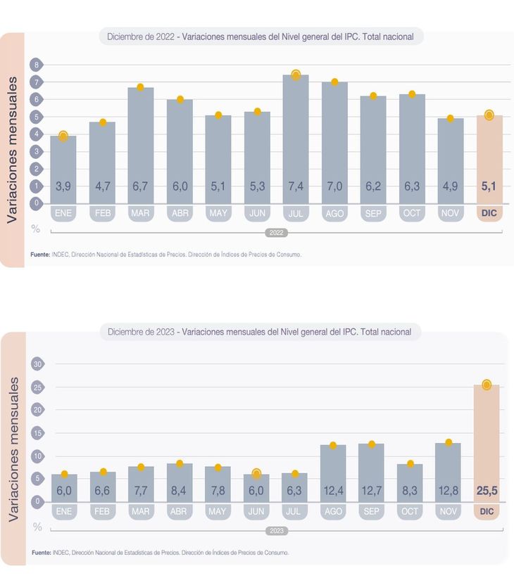 Desde la cartera de Economía informaron que en la comparación interanual, el incremento de precios alcanzó el 263,4%, aunque aseguraron que se transita un período de "desinflación". "El análisis de las medias móviles de las variaciones del IPC Nacional en los últimos meses es consistente con una profundización en el proceso de desinflación", comunicaron.