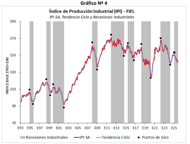 La entidad señaló que la caída anual más profunda la registró la industria automotriz, en un marco de fuerte contracción en la producción de vehículos, retroceso en las ventas y patentamientos, y nueva caída en las exportaciones por los menores envíos a Brasil. En paralelo, FIEL remarcó la contracción en la producción de químicos y plásticos, fundamentalmente en los segmentos de agroquímicos, jabones y detergentes y neumáticos.
