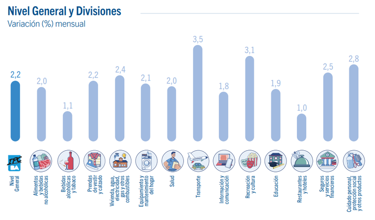 Por su parte, la categoría "Resto IPCBA", un proxy de la inflación núcleo que despeja los otros dos subconjuntos, aumentó 2,2%.