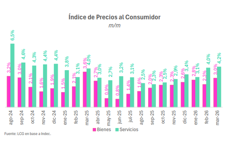 En cuánto a lo que pueda suceder en un futuro, desde ACM, indicaron que la inflación en servicios, y particularmente en tarifas de servicios públicos, "seguiría mostrando mayor empuje, impulsada por la continuidad en la corrección de precios relativos y la reducción de subsidios". Mirando hacia adelante, para lo que sigue del 2026, desde esta consultora esperan que los bienes continúen actúen como la principal ancla del proceso de desinflación.