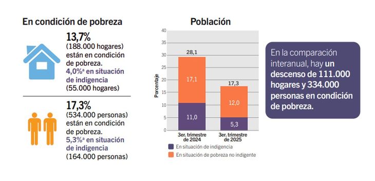 La pobreza en la Ciudad de Buenos Aires cayó 10,8 puntos porcentuales en el tercer trimestre del 2025. La tasa que mide el Instituto de Estadística y Censos de la Ciudad Autónoma de Buenos Aires (IDECBA) ya se ubica en 17,3%. Se trata de la cuarta caída consecutiva. La indigencia también mostró un desplome interanual al 5,3%. Sin embargo, también creció la desigualdad. Los motivos.