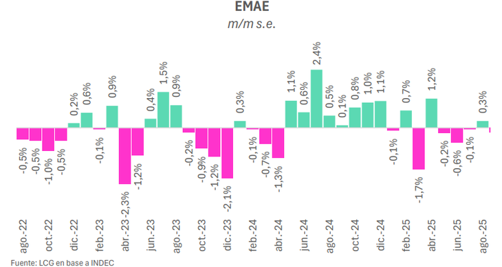 La actividad económica tuvo un leve rebote en agosto y cortó una racha de tres caídas consecutivas. Aun así, la tendencia al estancamiento se mantiene, en un contexto de bajos salarios reales, tasas de interés volátiles e incertidumbre preelectoral.