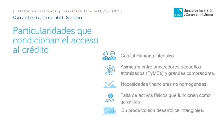 Es para empresas del sector de software y servicios informáticos radicadas dentro o fuera del territorio nacional. Se otorga por un plazo de hasta 15 años en pesos y 10 años en dólares. La tasa para préstamos en pesos es variable, conformada por la tasa Badlar Bancos Privados más un margen de 450 puntos básicos con un tope de tasa fija según plazo. En el caso de préstamos en dólares, la tasa es Libor más el "spread" que el BICE determine en cada caso.