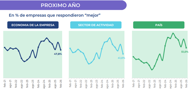 "Mientras que el año pasado un 68,6% de las empresas había anticipado una mejora a nivel país para 2026, este año solo el 27,6% dijo estar mejor", dice el reporte.