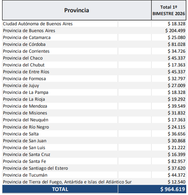 En ese sentido, un reporte que presentó el diputado de Unión por la Patria y extitular de la Aduana, Guillermo Michel, indica que en los primeros dos meses de 2026 la recaudación fiscal alcanzó los $34,56 billones. De ellos, el 37% ($12,9 billones) quedaron en la Administración Nacional y 32% ($11,1 billones) fluyó hacia las provincias.