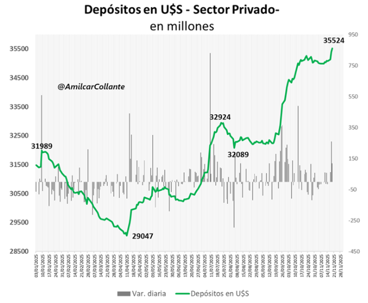 Los depósitos en dólares superaron los u$s35.500 millones.