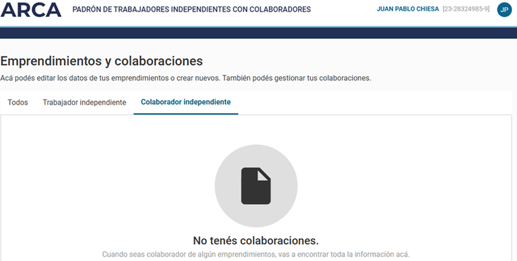 Entramos a vemos “trabajador independiente” y “colaborador independiente”