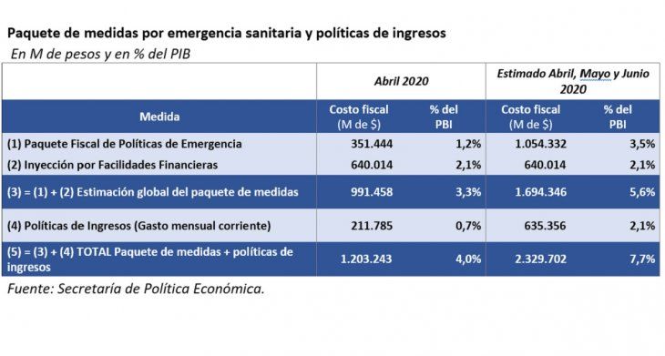 Al analizarlos números globales, queda claro que entre abril y junio el Estado habrá destinado un fondo contracíclico $1,7 billones ($1,05 del paquete fiscal de políticas de emergencia+$640 mil millones de las facilidades financieras), lo que implicará un gasto del 5,6% del PBI. Estos números muestran que la asistencia global está por encima de los números que habían trascendido o que se habían estimado.