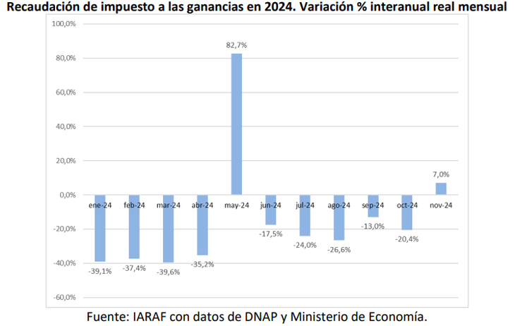 Entre otros elementos que juegan a favor de la recaudación del Impuesto a las Ganancias está la baja base de comparación del 2023, porque en ese momento el gobierno dispuso que lo dejen de pagar los asalariados.