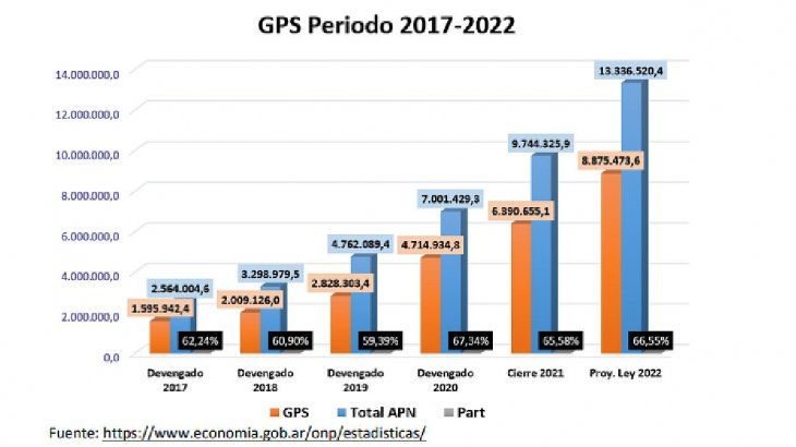 Según destacó un reciente informe de la Asociación Argentina de Presupuesto (ASAP), el presupuesto de gastos de la Administración Nacional presenta una “alta proporción” de erogaciones vinculadas al GPS como consecuencia, principalmente, de la incidencia de las prestaciones previsionales vinculadas a las jubilaciones y pensiones a cargo de la ANSeS.
