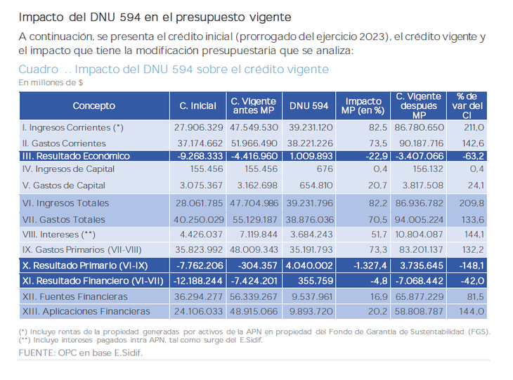 El análisis corresponde a la Oficina del Presupuesto del Congreso y hace referencia al impacto del DNU/594, por medio del cual se sumaron créditos presupuestarios por un total de $39 billones.