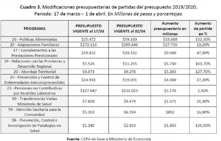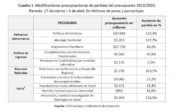 Los nuevos requerimientos que demanda la pandemia de Covid-19 modificaron las prioridades del gasto público nacional. Con el objetivo de observar estas modificaciones, aquí analizo las principales variaciones de las partidas del Presupuesto 2019 –que fue prorrogado a 2020– entre el 17 de marzo y el 2 de abril, así como también la variación en la ejecución de las mismas. El análisis permite identificar las principales preocupaciones del Gobierno con relación a la pandemia.