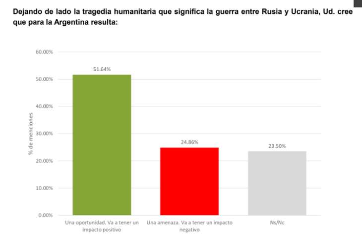 A los movimientos en los precios hay que agregar problemas en las cadenas de suministros, tal como está sucediendo con el gasoil en plena época de cosecha en la Argentina. Aún no pueden estimarse con precisión ni la duración del conflicto bélico ni sus consecuencias finales. Para la Argentina, los impactos tienen aristas positivas y negativas.