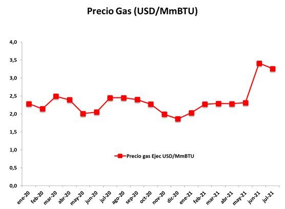 Respecto del gas, en los últimos meses, con la llegada de la demanda invernal, se registraron mejorías tanto en producción como precio respecto del año anterior. En promedio, en este período, la variación interanual de producción fue de del 3%. La variación año a año del precio para el mismo periodo fue en promedio del 38%, impulsado fuertemente por el nuevo Plan Gas.Ar