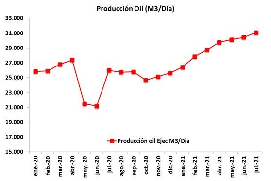 En lo que va del año, el crecimiento de la producción es de un 3% promedio mensual, con una variación interanual acumulada de los primeros siete meses del 17% aproximado.