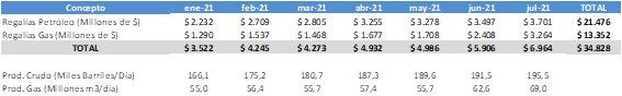 El análisis del organismo muestra que "en los últimos tres meses se registró un promedio de USD 67 para el barril de referencia y USD 52 por barril para el precio de liquidación, muy por encima de los USD 45 y USD 40 registrados en promedio durante 2020. Se espera que el BRENT continúe en aumento promediando los USD 75 por barril".