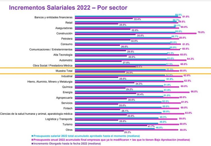 Por la inflación, las empresas se están viendo obligadas a modificar el presupuesto para actualizar salarios. Según un informe realizado por Willis Towers Watson (WTW), las compañías están gestionando las autorizaciones correspondientes, ya sea con su casa matriz, región o con el dueño de la organización, para conseguir un presupuesto salarial acumulado que esté alrededor del 60/62%. Mientras que en la edición anterior (solo un mes atrás) se calculaba un 55%.