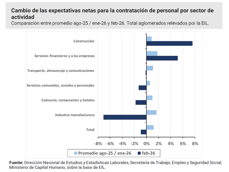 El panorama hacia los próximos meses no resulta alentador. Las expectativas empresarias de contratación se tornaron negativas por primera vez en casi dos años, con más firmas proyectando reducir personal que aumentarlo.