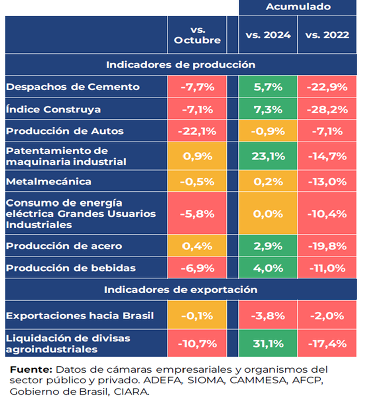 La entidad advierte que se trató de un mes con menos días de actividad (por los feriados), pero en el acumulado la producción industrial aún se encuentra estancada en los mismos niveles del cuarto trimestre de 2024 y en torno de 10% por debajo de 2022 y 2023.