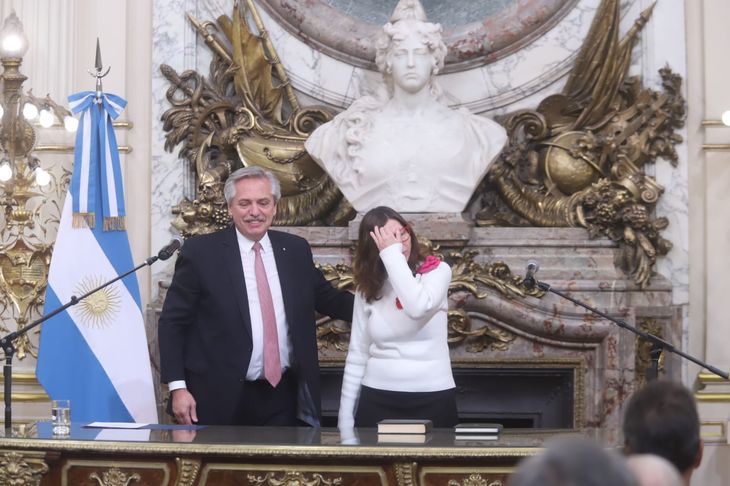 Minutos antes de la jura, Massa participó de la promulgación de la Ley de Alivio Fiscal por parte del jefe del Estado, proyecto que se sancionó el jueves último en el Senado y que fue impulsado originalmente por el titular de la Cámara baja.