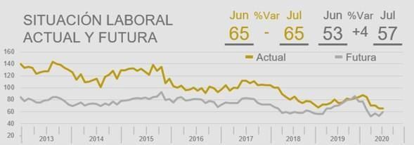 Si bien la expectativa de la situación general actual no varía respecto de junio, la futura aumenta 4 puntos. "El reinicio de actividades de algunos rubros a finales de julio influyó en una percepción positiva para el futuro", dice el informe.