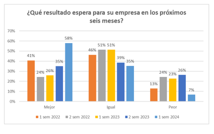 El trabajo detalla que “más de la mitad de los encuestados (58%) sostuvo que espera un resultado mejor para su empresa en los próximos seis meses”.
