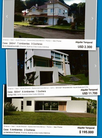 Hoy, en los portales de inmuebles, las ofertas para casas con mayor capacidad, superan holgadamente esos precios. Claro que todo depende de cada propiedad. Por ejemplo, un chalet para 7 personas en Pinamar se alquila para la primera quincena de enero a $110.000.