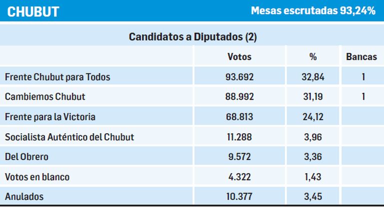 El Frente Ciudadano y Social, que representa al kirchnerismo, y Cambiemos cerraban anoche en un empate técnico, cuando ambas fuerzas orillaban el 30% de los votos. La contienda marco un revés para Frente Tierra de Unión, de la actual gobernadora Rosana Bertone.