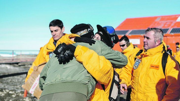 Esta vez el aterrizaje (luego de 4 horas de vuelo) tuvo un plus adicional. En Marambio estaba la Dotación XLIX (49) esperando ansiosa al Hércules. ¿El motivo? Luego de un año de arduo trabajo y con la misión cumplida, este grupo de personas -que realiza distintas tareas en el lugar- aguardaba ansioso el recambio de personal para poder regresar a sus hogares y abrazar a sus familiares.