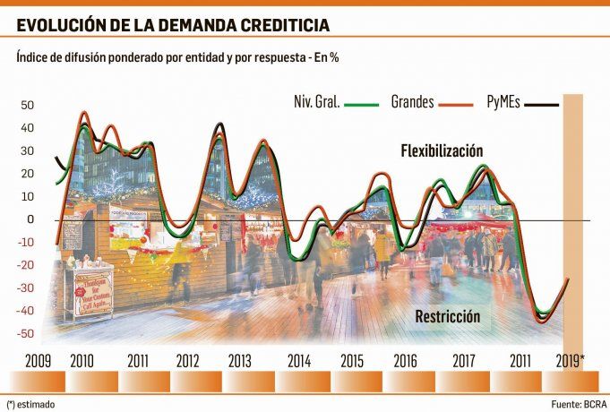 Crisis cambiaria, retorno al FMI, plan de estabilización, suba espiralizada de tasas. Para entender por qué se detuvo súbitamente el financiamiento en pesos a las pymes (y al sector privado en general) desde el segundo semestre de 2018 hasta la actualidad es necesario remontarse a la implementación -en octubre pasado- de la política económica que exigió el segundo acuerdo con el Fondo: medidas monetarias muy duras, con control de agregados y tasas altas, sobre todo en términos reales, para intentar domar el tipo de cambio y la consecuente inflación, con el fin de poder encauzar una frágil macroeconomía. La contracara directa de esta férrea política fue el incremento sustancial del costo de financiamiento, que hizo casi prohibitivo el acceso al crédito y obligó a las empresas, en especial a las pymes, a buscar caminos alternativos y poco ortodoxos para cubrir necesidades ante desfases en el flujo de fondos, producto del incremento de costos fijos, y de la caída en las ventas, en el marco de actividad económica que volvía a entrar en recesión por segunda vez en un lapso menor a tres años. Según datos del BCRA, que recopiló First Capital Group, el total de préstamos en pesos al sector privado cerró 2018 en los $1.571.037 millones, representando un alza nominal de apenas el 17,18% anual, lo que marca una fuerte caída en términos reales, dada la inflación de casi el 48% observada el año pasado. Esta foto tomada en el epílogo de 2018 se replica en el primer trimestre de 2019. “Hoy los bancos les cobran a las pymes que solicitan un crédito tasas realmente muy altas, desde un 70 y hasta más del 100%. Muchas lo evitan al máximo, y otras tratan de tomar lo estrictamente necesario. Ha caído sensiblemente la cantidad de préstamos que toman las pymes en el mercado”, describió Pedro Cascales, secretario de la Confederación Argentina de la Mediana Empresa (CAME). Durante el cuarto trimestre de 2018, las entidades financieras registraron una significativa disminución (-37%) de la demanda crediticia de las pymes en todos los plazos de financiamiento, en línea con los movimientos evidenciados en los dos trimestres previos, según indicó la Encuesta de Condiciones Crediticias (ECC) que elabora el BCRA. Para el primer trimestre de 2019, en tanto, se espera nuevamente una significativa caída de la demanda, aunque de menor intensidad, resalta el informe. “La sensación que sobrevuela hoy es que ante cualquier movimiento del dólar, la tasa es la única variable para contenerlo y debe subir mucho. Entonces lo que prevemos es que las tasas van a seguir altas durante todo el año”, advirtió Lorenzo Sigaut Gravina, economista jefe de Ecolatina. Su proyección se traduce en escenario sombrío para la reactivación de la demanda de créditos en 2019, más allá de las buenas intenciones del oficialismo por estimular algunas líneas de financiamiento subsidiadas.