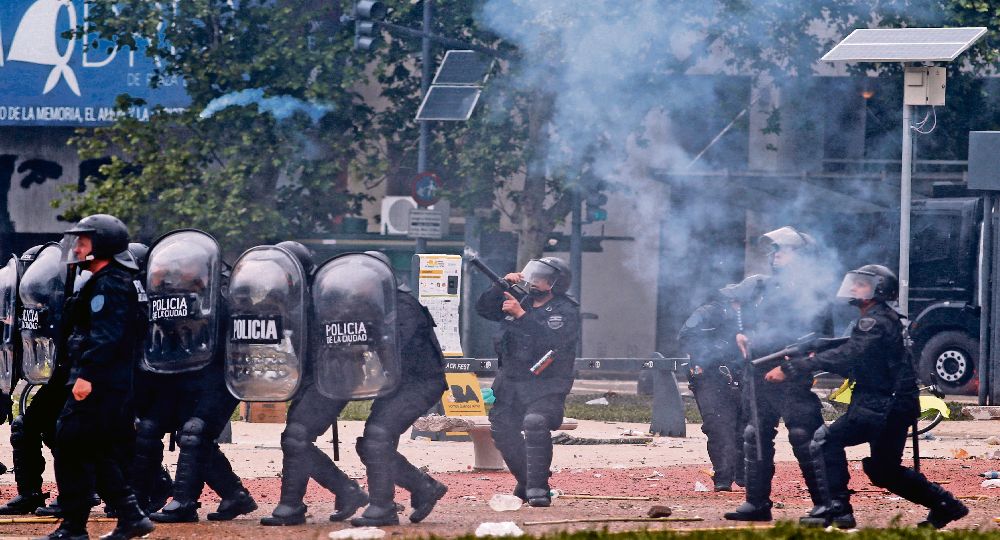 violencia. Activistas se enfrentaron ayer con efectivos de la Policía de la Ciudad durante la sesión en Diputados, arrojando piedras, palos y pirotecnia. La fuerza de seguridad repelió con gases lacrimógenos y balas de goma; una batalla campal que terminó con heridos y detenidos.