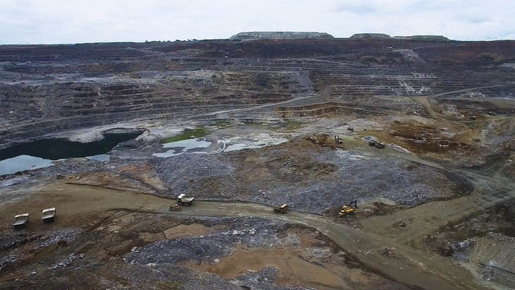 Tres minas a cielo abierto, con diferentes tipos de mineralización.