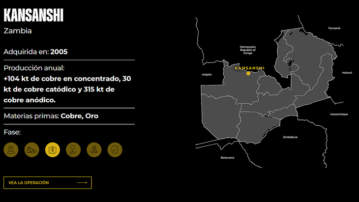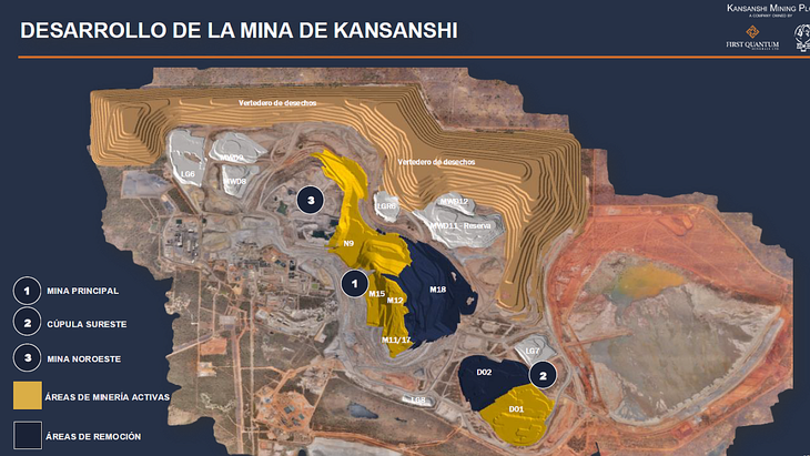 Ubicada cerca de Solwezi, en la provincia noroccidental, Kansanshi Mining Plc es propiedad de FQM (80%) junto con la participación estatal de ZCCM-IH (20%).