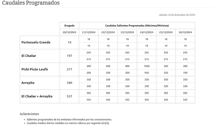 A esta inyección hidroeléctrica del Litoral se podrían sumar aportes de las represas del Complejo Comahue, que hoy no presentan dificultades en sus caudales, como sí ocurrió el año pasado. La Autoridad Interjurisdiccional de las Cuencas de los ríos Limay, Neuquén y Negro (AIC) anunció para la última semana del año caudales programados habituales.