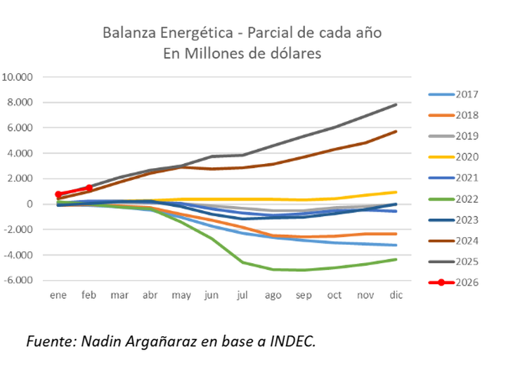 Aunque el saldo fue u$s76 millones menor al registrado en el mismo mes de 2025, la dinámica interna del sector mostró una solidez que preparó al país para el posterior shock de precios de marzo.