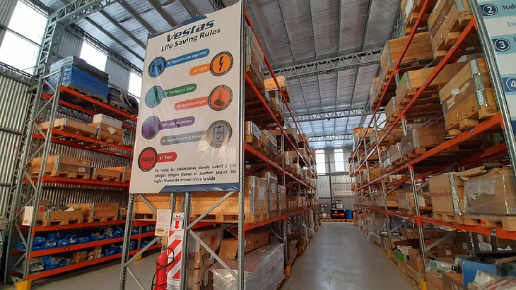 Las áreas que operan en el warehouse y training center de Vestas están enfocadas en logística, service, seguridad, ingeniería y master data. Además del safety stock, el almacenamiento incluye piezas sobredimensionadas que van desde los main components hasta materiales de pegamento para palas, motores, convertidores, materiales inflamables o eléctricos, uniformes, equipos de seguridad, entre otros.