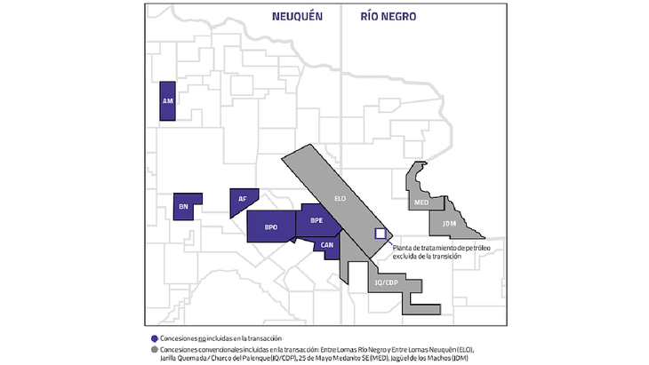 Aconcagua, un operador upstream con servicios integrados centrado en la producción convencional, se convertirá así en el operador de las concesiones de las áreas rionegrinas Entre Lomas Río Negro, Jarilla Quemada, Charco del Palenque, Jagüel de los Machos y 25 de mayo-Medanito SE y la neuquina Entre Lomas Neuquén. En total suman 1.454 kilómetros cuadrados, con una producción al 2022 estimada en 10,6 (kBoe/d), equivalentes a 10.600 barriles BOE diarios, y reservas totales previstas por 13,9 MMboe.