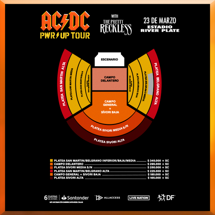 Precios y ubicaciones de las entradas para AC/DC en River Plate